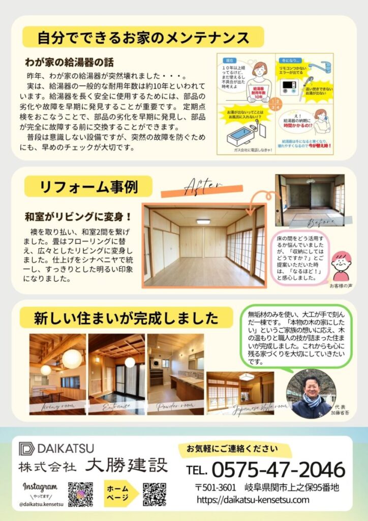さて、6月にOBのお客さまへ「春のニュースレター」をお届けしました。変わらぬご縁に感謝しながら、私たち大勝建設の今を綴った紙面です。