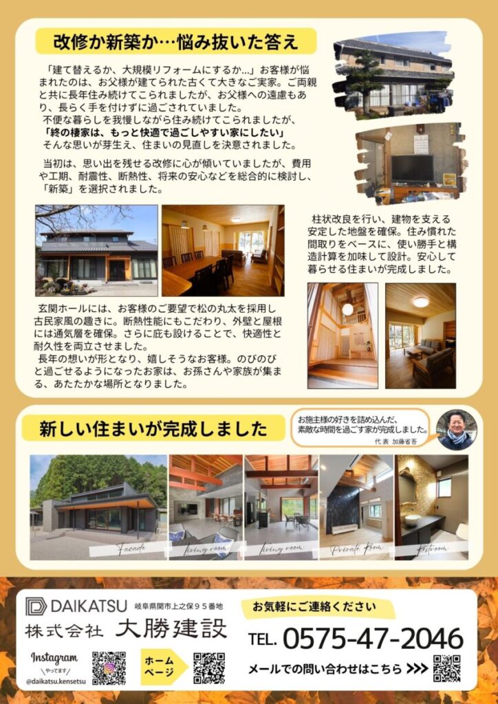 季節の移ろいとともに、私たち大勝建設の“今”を綴った紙面です。