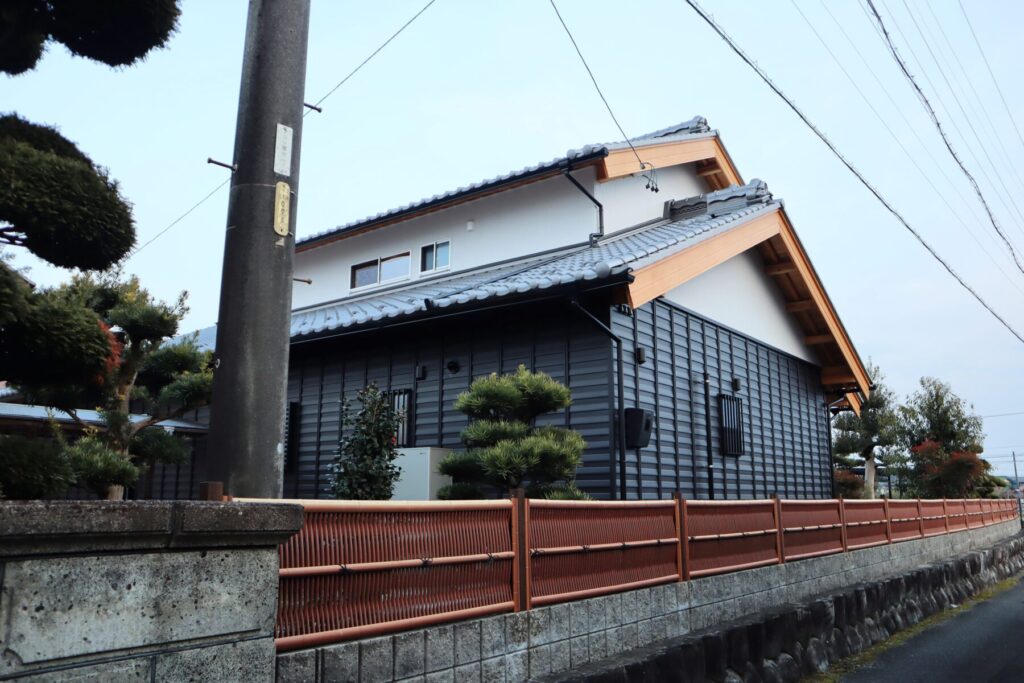完成した住まいは、瓦屋根の重心の低さと木部の落ち着いた色味が調和し、